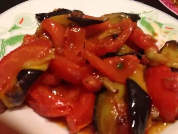 1.茄子洗净,切成条.西红柿洗净,去皮,切成细块.