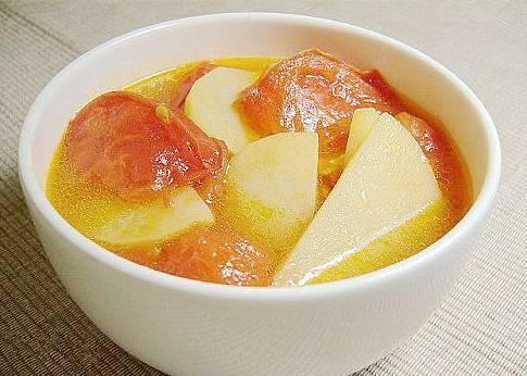 3.锅留底油,倒入西红柿,翻炒出汁后,倒入土豆片,加半勺白糖,半勺盐,淋入适量白醋。
