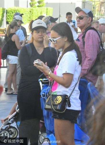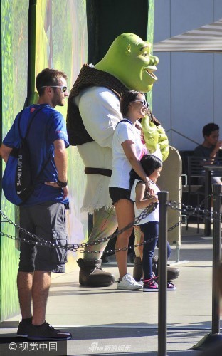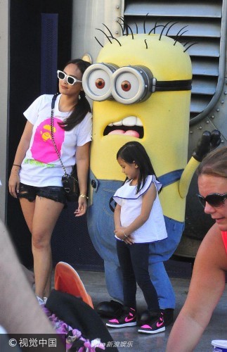 组图:泰国演员Nana与小黄人合影 老公推婴儿车变"苦力"