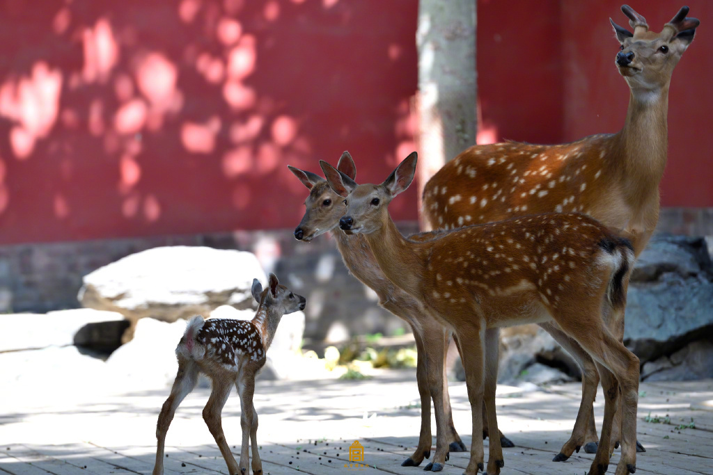 2018年6月,在故宫住了半年多,一只雌性梅花鹿还在故宫慈宁宫花园鹿舍中诞下幼崽。
