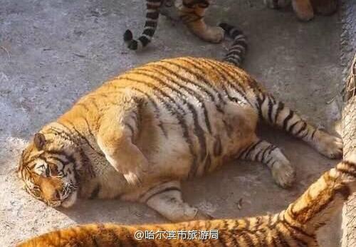 2017年1月,一组东北虎"吃胖成球"的照片在网上走红。事件起因为哈尔滨市旅游局官微于1月26日发布了一组位于哈尔滨的东北虎林园里"身材走样"的老虎照片。图片中"丛林之王"们一只只圆滚滚、胖嘟嘟,有如充饱气的气球,威严尽失。微博还配上文字:"十只橘猫九只胖,还有一只特别胖!"好歹也是王,能不能长点心。