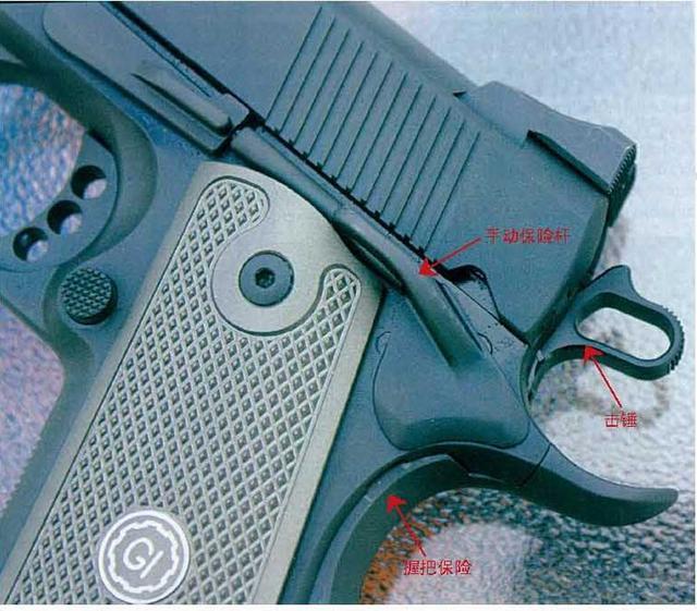 GI手枪依旧沿用M1911手枪的设计,尺寸和外形都相差不大,以至于M1911手枪的一些配件都可以用在GI上。两枪最大的差别就在于枪管口径、枪管壁的厚度,毕竟大口径的手枪弹需要更厚的枪管来支持。