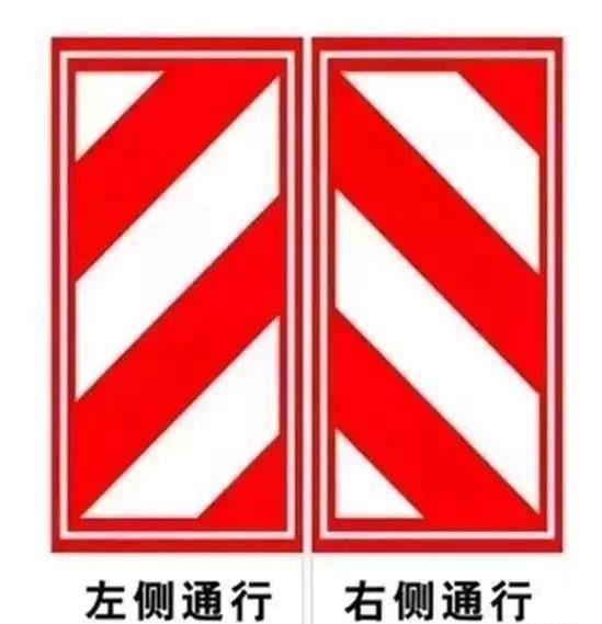 这种标志一般出现在道路一侧断交施工或事故堵塞路段,在距现场500m就会有指示标志,隔离板上有白底红色箭头或蓝底白色箭头,箭头指向左侧可以靠左侧行驶;箭头指向右侧可以靠右侧行驶。
