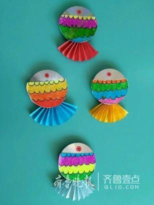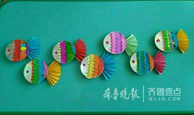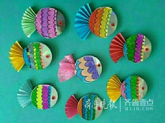 "这种方式不仅能激发幼儿发明创造的欲望,也能增强幼儿的动手操作能力,一举两得。"壹粉说,手工课上体验到了变废为宝乐趣的宝宝们都收获满满。图为孩子们制作的充满童真的"光盘鱼"(齐鲁晚报·齐鲁壹点记者 王若松 实习生 刘凡)