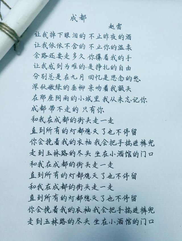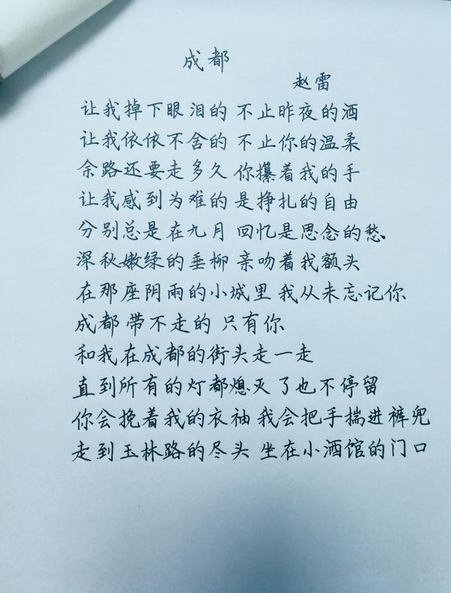 最近赵雷在湖南卫视节目《歌手》上唱的一首《成都》火了,刘欢称赞赵雷歌词写得好,小编也觉得歌词写得很好,忍不住手抄下来,那些年,网络和手机还不普及的时候,您是不是也曾经手抄过歌词,有空拿出来念念,或者哼两句了?现在小编开始抄了: