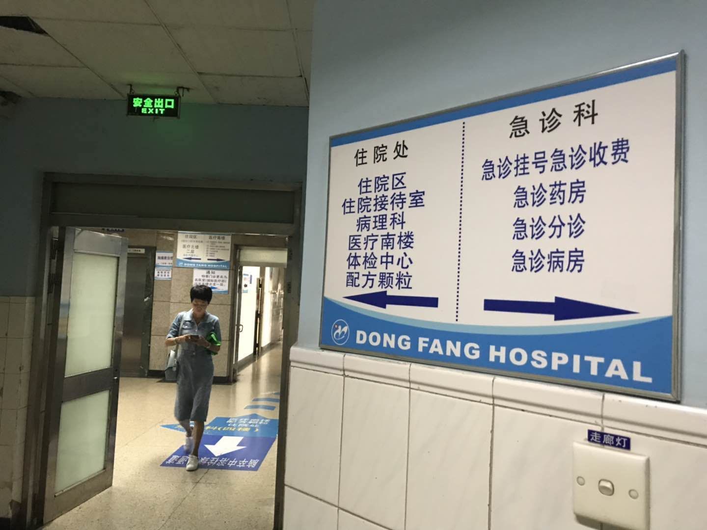 6月20日,北京中医药大学东方医院门诊部一条走廊的墙壁上,指示牌指明住院处和急诊科的方位。摄影/新京报记者 侯少卿