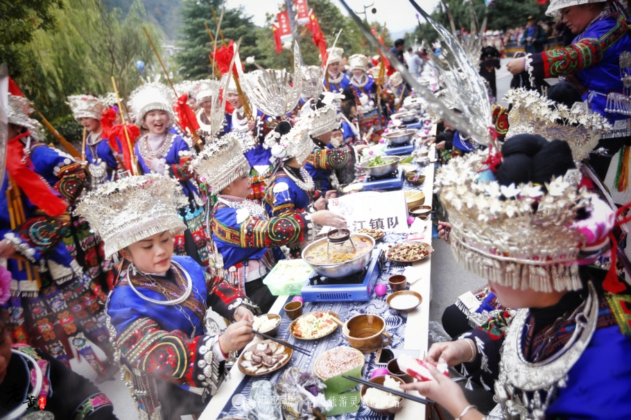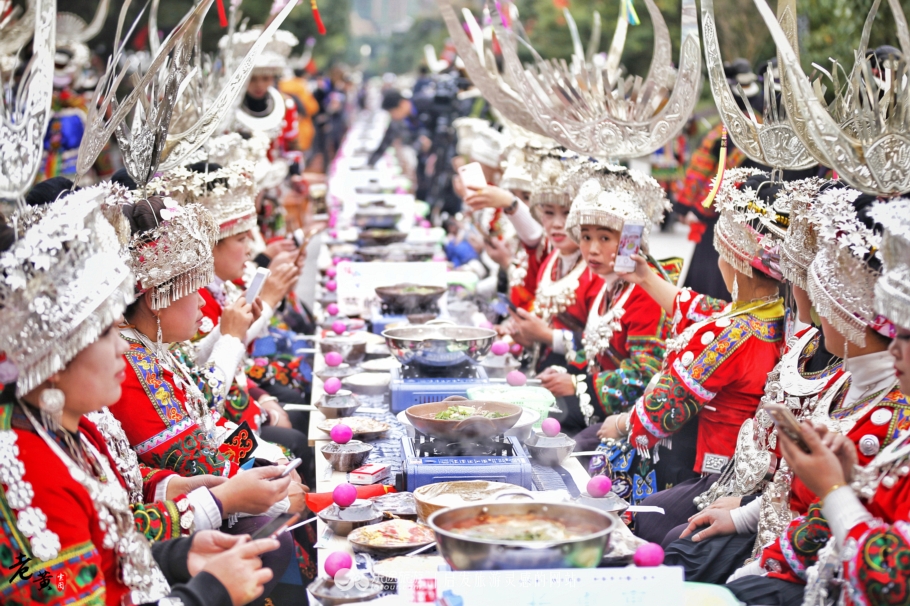 长桌宴这种形式,在国内并不稀罕。我也曾在很多地方参加过这样的宴席,然而这次在雷山过苗年,经历的这次长桌宴却是十分特别的。