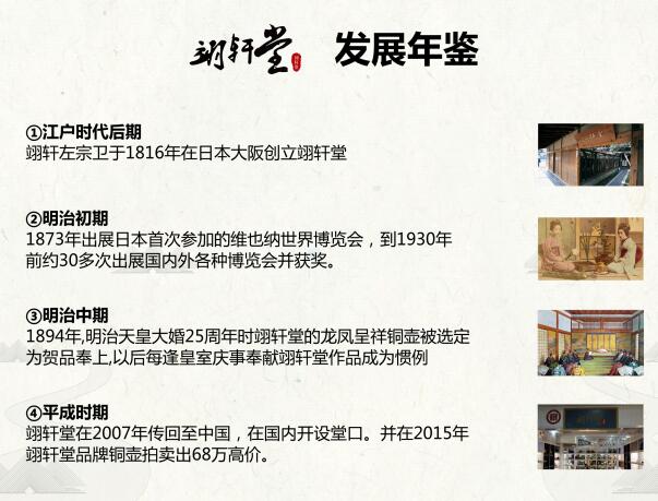 翊轩堂铜壶近年来逐渐成为国内客户的青睐之选,而事实上,翊轩堂铜壶已经在国外有超过200多年的使用历史,翊轩堂创立于1816年日本大阪府大阪市,1873年出展日本首次参加的维也纳世界博览会,到1930年前约30多次出展国内外各种博览会并...