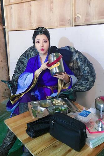搜狐娱乐讯 2017年4月11日讯,柳岩微博发布一组在电视剧《武动乾坤》片场的花絮图,她以剧中饰演角色"穆芊芊"的标志性宝蓝色古装造型现身,前一秒还是在树林中休息的女神画风,突然转变成吃货女汉子,展现柳岩用保温汤壶大口喝汤的全过程,面前桌子上放的餐盘也干干净净,她写道:"我是一个云淡风轻的女子,什么?开饭啦!怎么不早叫我!"逗趣可爱,尽显吃货本色。