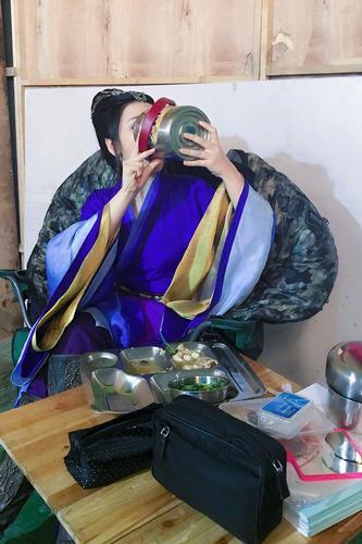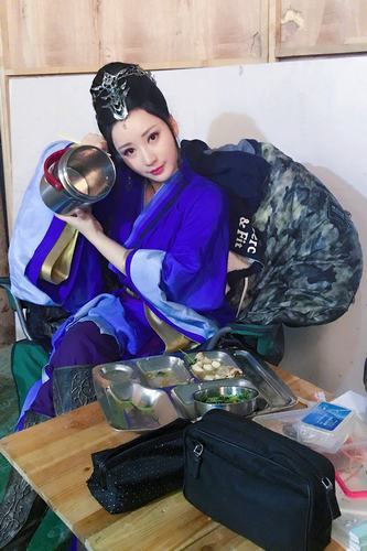 的标志性宝蓝色古装造型现身,前一秒还是在树林中休息的女神画风,突然转变成吃货女汉子,展现柳岩用保温汤壶大口喝汤的全过程,面前桌子上放的餐盘也干干净净,她写道:"...
