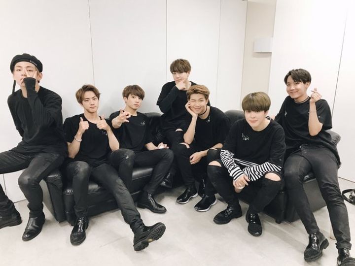 31日晚,防弹少年团官推更新写道:"照片中,防弹成员们黑衣酷盖出镜,每个成员的姿势和表情各有不同,十分可爱。防弹少年团2017 THE WINGS TOUR 日本大阪第三场将于1日(明晚)举行。