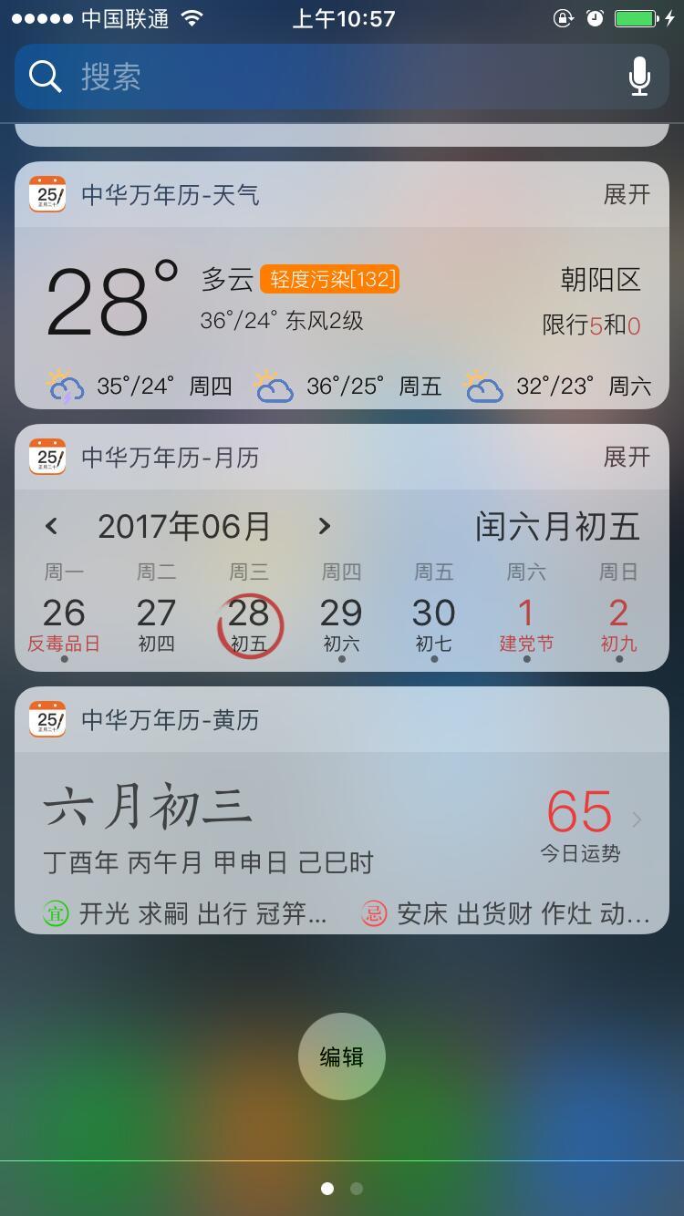 针对iPhone用户,中华万年历日历在通知栏/widget中添加黄历模块,让用户查询黄历信息、每日宜忌、综合运势得分更方便,受到业界和用户好评。