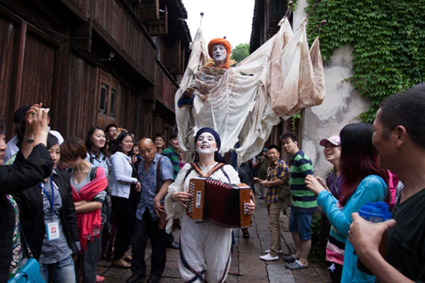 到了现代,陈向宏、黄磊、赖声川、孟京辉又联合发起乌镇戏剧节,每年上演的戏剧为乌镇又增添一笔人文色彩。乌镇戏剧节融汇了世界上最好的剧目,短短几年俨然已成为中国当代剧坛最具影响力的戏剧盛宴,外观现代又丝毫不突兀的乌镇大剧院也已跻身于世界一流剧院之列。