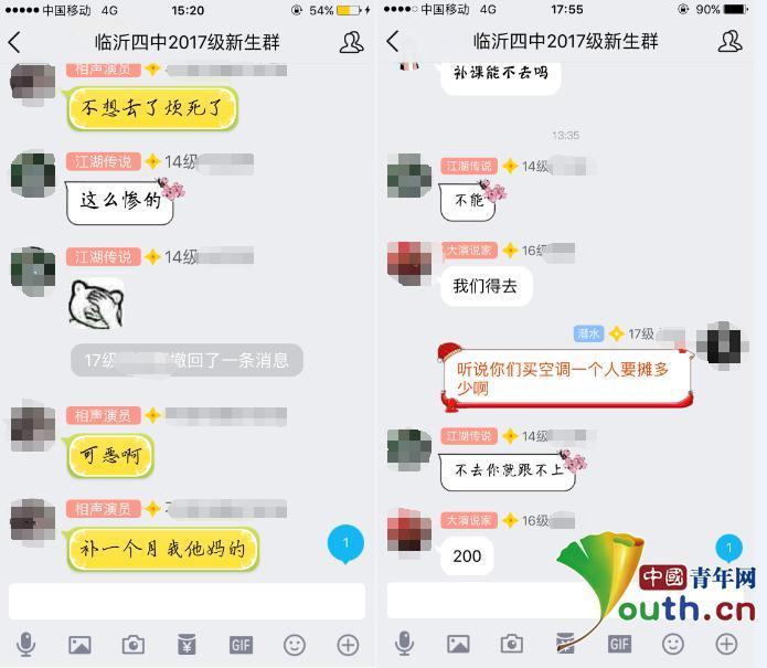 中国青年网北京7月18日电 (记者 邹畅 实习记者 郑力) 7月16日晚,有网友爆料称,山东省临沂市第四中学定于7月21至8月21日对学生进行补课,将收取补课费;并于暑假期间统一购置空调,购置费和电费也由学生家长承担。