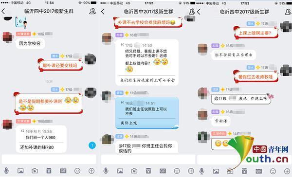 临沂第四中学负责招生的一位老师就此事对中国青年网回应称,所谓的"补课"是学校在假期对学生免费开放,上自习课,班主任老师义务到校组织纪律。