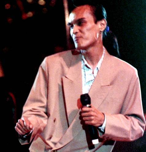 他的标志性的一头长头发还没有剪,他把它扎成了马尾垂在身后,他穿的那件外套,披在身上,显得他特别地瘦。他唱的时候,他常常会用手,去摁在开过刀的地方,因为他只要一用力伤口就会痛。