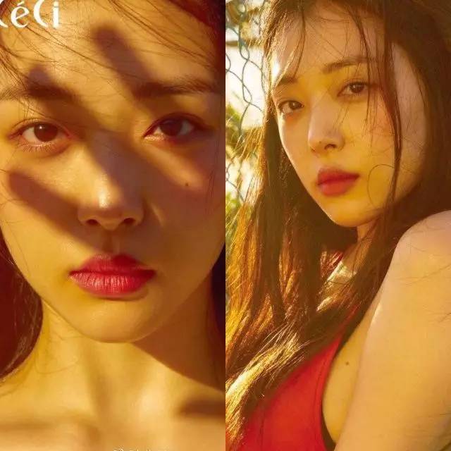 再看看水晶之前的画报,脸上的妆容都会用橘色调会比较元气一些,五官太冷艳,这样更柔和。