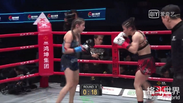 比赛开始后,张伟丽不急不慢,打的非常稳定,而泰拳出身的朱妮可在腿法方面则有着不小的造诣,两人都相对保守,打的很谨慎。