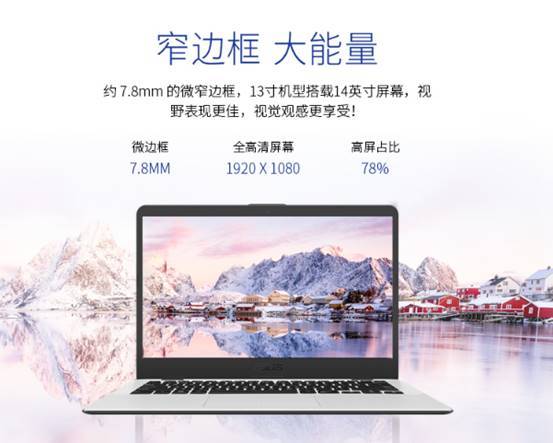 拥有7.8mm超窄边框的灵耀S4000,虽然不是真正的无边框,但却能够为用户带来超宽广的视觉体验,加上高分辨率屏和高品质色彩显示技术,让显示体验更加舒适。