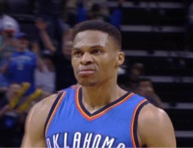 在最后时刻的那个致命三分命中后,维斯布鲁克在场上尽情的怒吼。维斯布鲁克今年打出了现象级的赛季表现,场均34.7分钟的上场时间内可以得到31.6分10.7个篮板10.4次助攻1.6次抢断,其中得分联盟第1,助攻联盟第3,篮板联盟第10,赛季41次三双(联盟第1),胜利贡献值12.3(联盟第5),使用率41.9%(联盟第1),助攻率57.1%(联盟第1)。