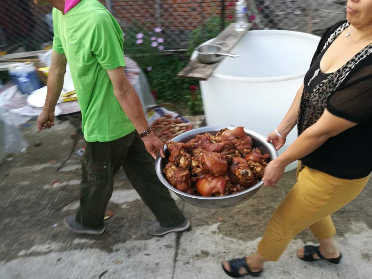 这是在一个乡下拍到的一些图片,这里正在准备一个婚礼宴席。女人们正在肔鱼,这人负责杀鱼,这种鱼叫镜面鲤鱼,鱼体亮泽肉质细嫩。