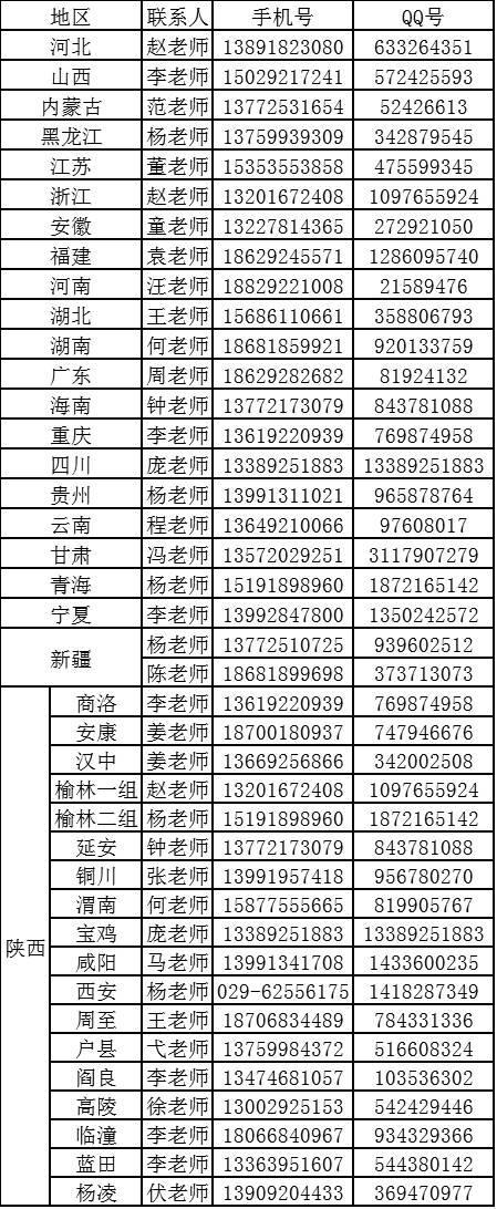西京学院各地区招生老师联系方式