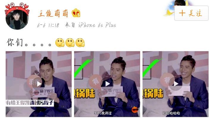 爱豆分享 今天中午,有网友分享几张王大陆受访的视频截图。其内容是:记者问王大陆有没有给王俊凯讲过污段子?王大陆没正面回答,只是说不只我讲过。哈哈~那就是你也讲过喽!