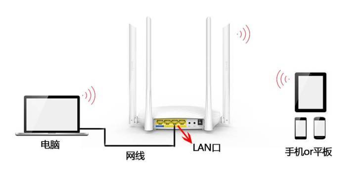 首先进入副路由的设置界面。电脑用一根网线连接副路由的其中一个LAN口,或者用手机/电脑/平板连接副路由的WiFi。