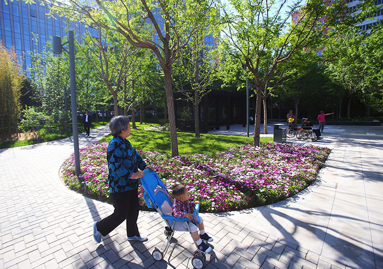 新京报讯 5月13日,刚刚建成的香河园口袋公园正式对市民开放,居民们来到公园里遛弯、赏花、逛博物馆。香河园口袋公园位于北京市东城区东北二环外侧,毗邻清水苑社区,周边有自来水博物馆和自来水厂等历史建筑。地块为绿化代征地,总面积9450平方米。公园于2018年9月底开工建设,是东城区2018年北京市新一轮百万亩造林绿化行动重点项目,也是2018年全区“百街千巷环境整治提升工程”之一。