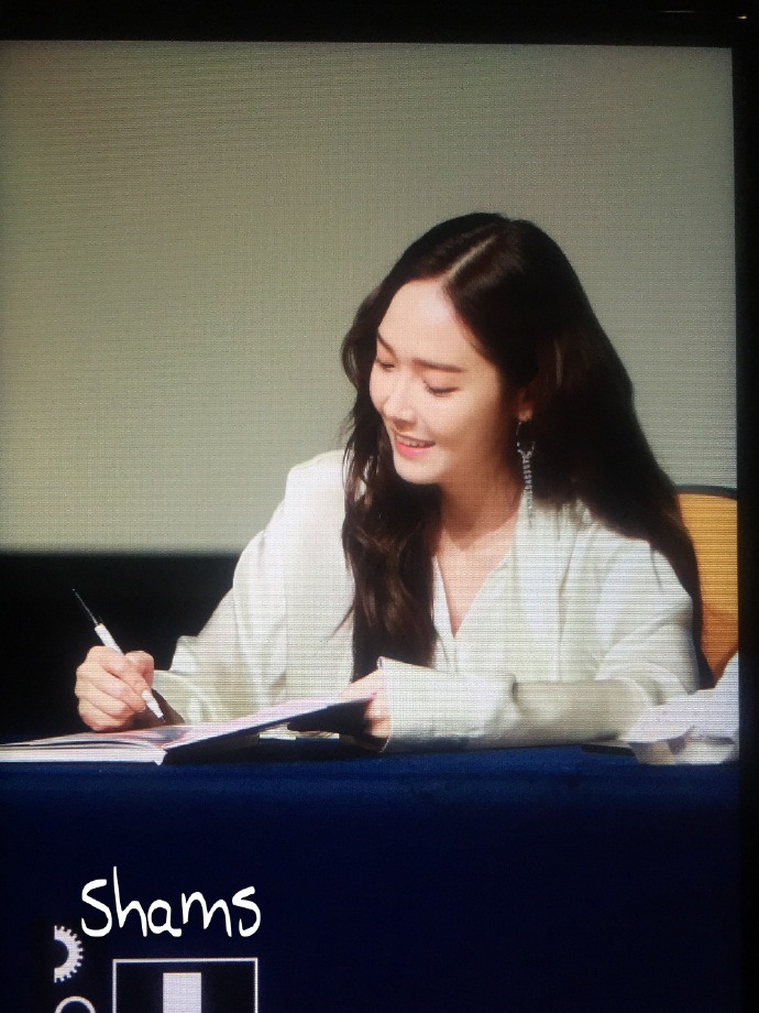 Jessica郑秀妍在首尔狎鸥亭ilchi艺术大厅举行了迷你三辑《My Decade》的第四场签售会。在今日的签售会中,Jessica穿了一件白色的四段长袖上衣搭配牛仔裤,既休闲帅气又温柔十足。