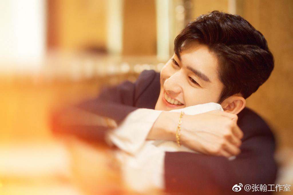 在暖色灯光渲染下,张翰眉目清朗,笑容灿烂,仿佛邻家少年。网友纷纷表示:原来霸道总裁笑起来这么暖!