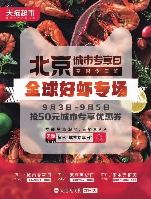 核心提示:据悉在9月4日-9月5日期间,天猫超市的城市专享日将推出"全球好虾"。从深海到餐桌原产地直采,急冻送到消费者手中。