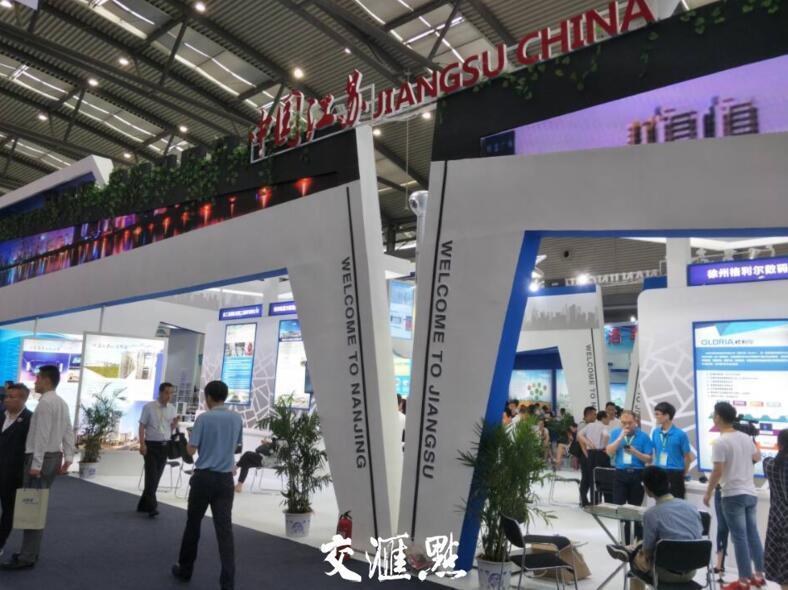 3日早上9点多,交汇点记者来到西安曲江国际会展中心B4展馆。刚走进展厅,推进"两聚一高"建设"强富美高"新江苏的字样显得十分醒目。江苏省中心展台造型宏伟壮观、富有科技感,两侧采用高清大屏和展板分别介绍江苏省在新兴产业方面的发展成果。