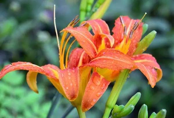 花坛里、绿化带里橘黄美艳的萱草,则是秋水仙碱浓度非常高的物种,与相对温和的亲戚黄花菜不同,萱草花苞的毒性就不小,吃了很容易中毒。