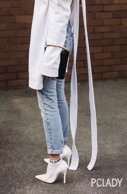 今年超火的巴黎世家袜子鞋和Vetements的袜靴相信已经有不少人种草了,但其实最简单又出效果的方法,就是给纯色的鞋子配上同一色系的短袜,视觉上统一起来,就能轻易穿出同样的高级感。