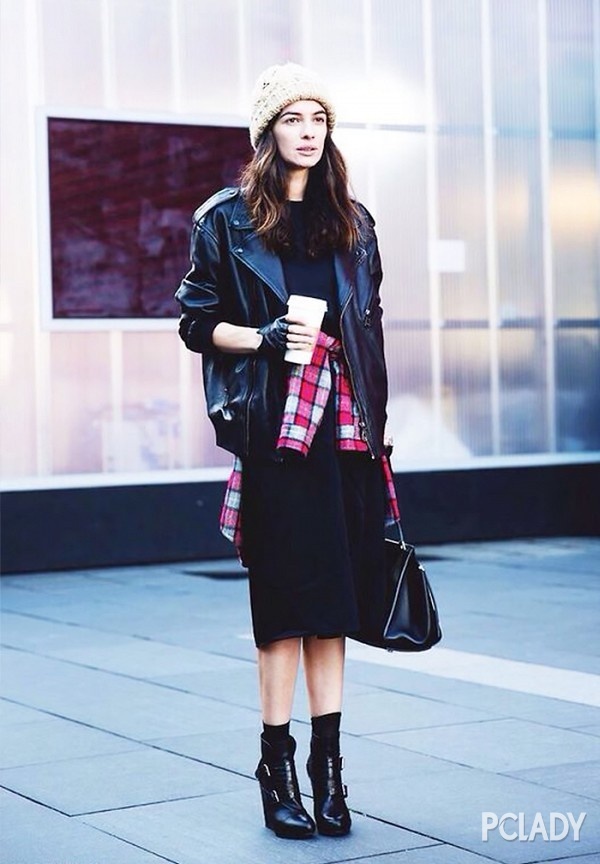 短靴里露出纯色袜子这种简单易搭配的组合,无论是光腿还是搭配直筒牛仔裤都很容易穿出范儿。