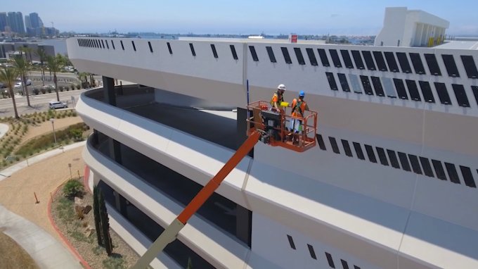 E-Ink屏幕常见于电子阅读器,有时会用于类似于智能手机或者笔记本的小众数码产品。不过在数年前,公司专门针对建筑和设计项目引入了名为Prism大型解决方案。现在,E Ink宣布将会和圣迭哥国际机场、设计公司Ueberall开展合作推出DAZZLE项目,在机场的汽车租赁中心(Rental Car Center)外墙上安装超过2000块E Ink Prism屏幕,在1600英尺长的外墙上创建可交互的动画。