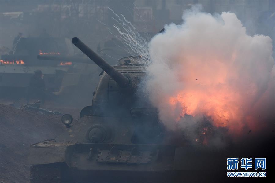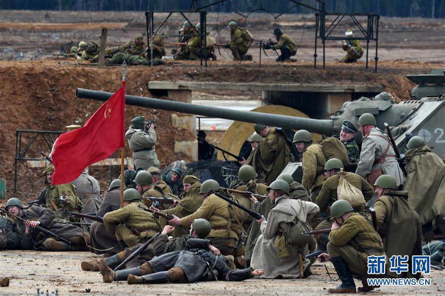 在俄罗斯首都莫斯科郊外,人们参加二战情景重现活动,纪念第二次世界大战胜利72周年。大约有1200名民众参加了这一活动。