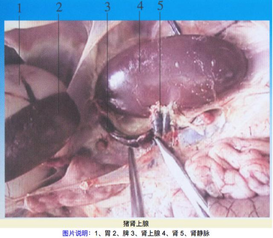 而猪的肾上腺俗称"小腰子",是猪的一种重要内分泌腺,主要分泌肾上腺索。猪的一对肾上腺位于左右肾的内前方,外层为浅色皮质,内层为髓质,呈暗红色,长而近圆柱状,是一个重量只有4~5克的小颗粒而已。