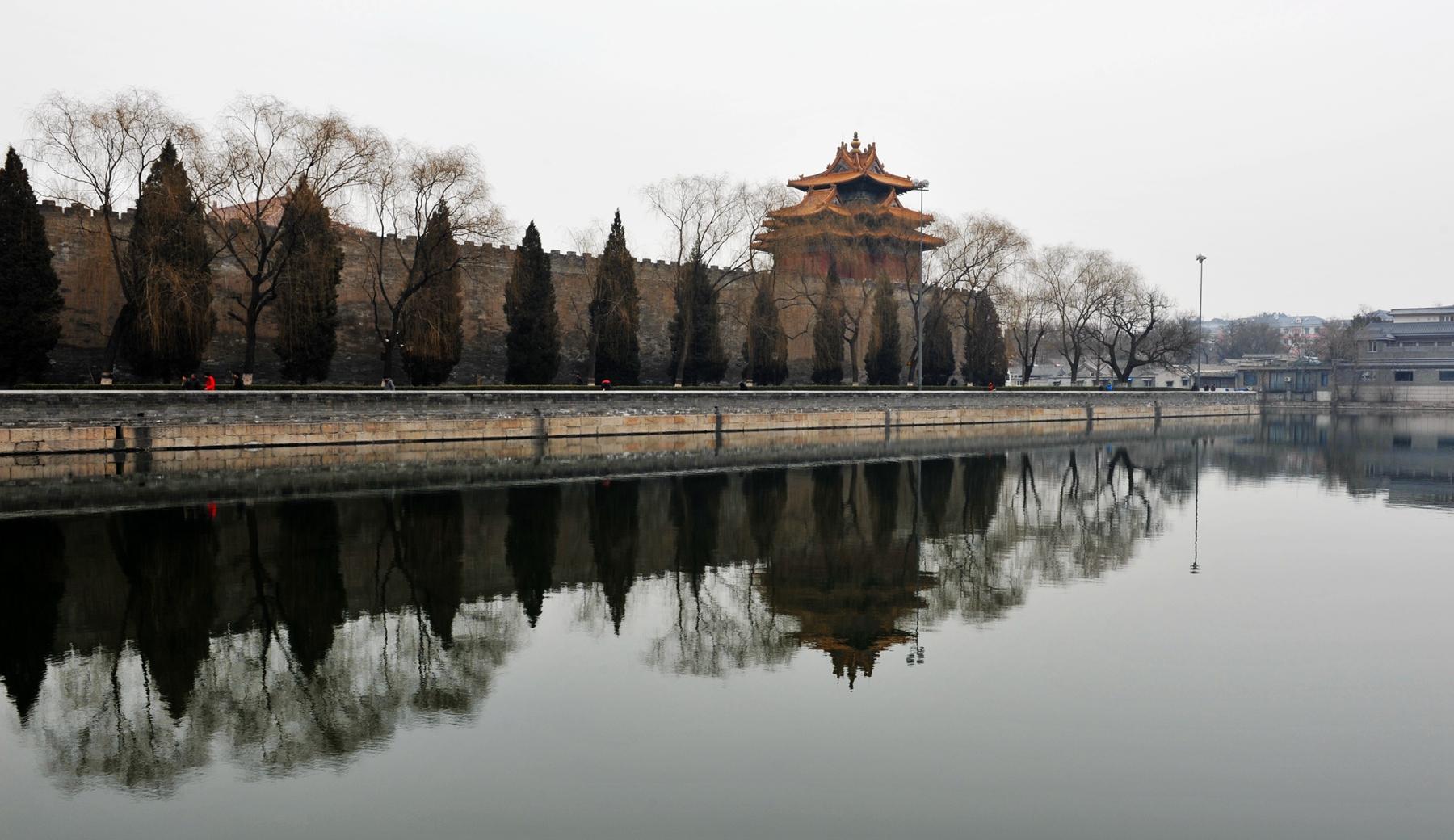 紫禁城的城墙四角有四座角楼,你可能很少上去过。我有幸两次环故宫上的城墙观看了角楼。四座角楼玲珑奇巧,绚丽多彩,为明代建筑,至今已有近600年的历史,角楼的平面布局为两个"十"字相叠的曲尺形,四周环绕白玉石柱杆基座,重檐为面体型多角交错,上层檐由四角攒尖顶和歇山顶组成。他的设计者巧妙地运用了借境的艺术手法,借鉴了宋画中《水殿招凉图》和《黄鹤楼》等临水建筑形式,以护城河碧波荡漾的水面为对景衬托,把紫禁城映照在倒影之中,颇有临水映皇城的诗情画意。
