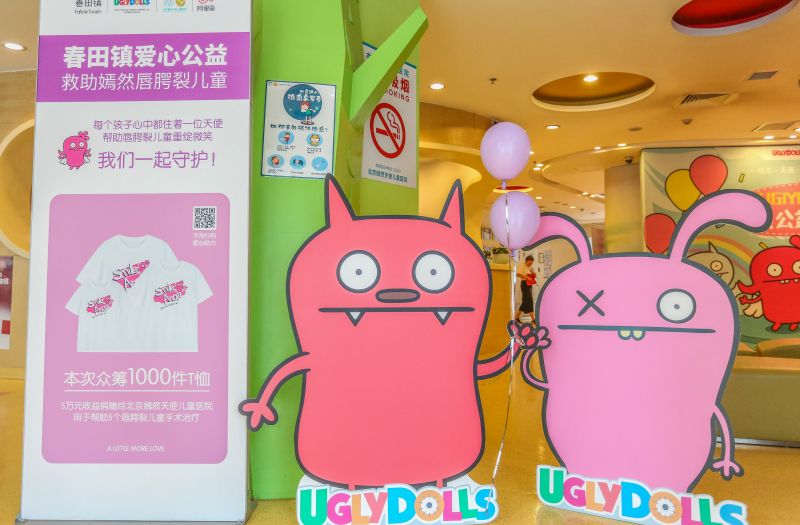 六一儿童节当天,阿里影业旗下IP商业化变现平台阿里鱼,正式授予了北京嫣然天使儿童医院丑娃娃专属形象SmileAngel,双方在嫣然天使儿童医院内举办了揭幕仪式,也由此开启了《丑娃娃UglyDolls》与嫣然天使儿童医院的系列战略公益合作。