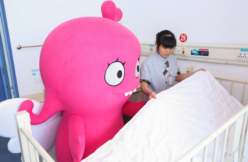 除了让现场的小朋友们感受到温暖的陪伴,SmileAngel一行还来到了病房,走到了正在康复中的唇腭裂儿童的中间,为他们叠被子,逗他们开心,小朋友们仿佛进入到了动画电影中,病房中不时传来笑声。SmileAngel的到来不仅给他们带来了欢乐,还让这些唇腭裂儿童暂时忘记了身上的疼痛。