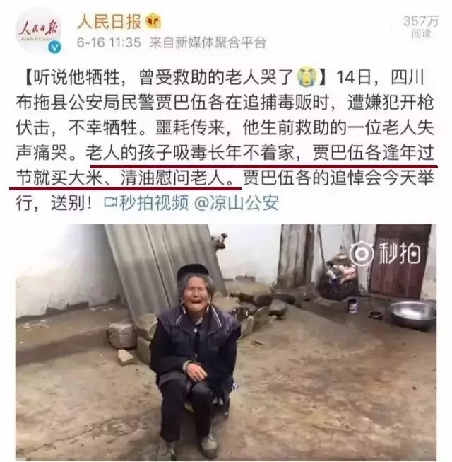 这是我的亲堂弟贾巴伍各。6月14日十二点十分点,持枪的贩毒歹徒夺走了他三十四岁的生命。人民失去了一个好警察,而我,失去了一个亲人,失去了一个生命里最踏实最靠谱的亲人。