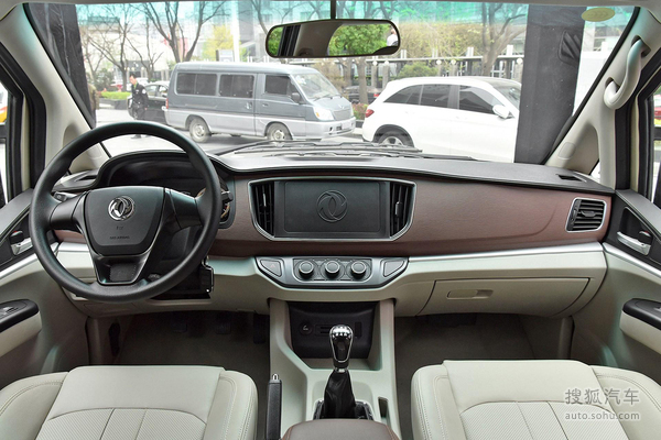 车辆内饰的造型也与菱智M5相同,中控台简约规整,层次感强。配置方面,菱智M5L的配备标准以实用为主,娱乐设施不完善,车辆不具备中控屏以及收音机。标准版车型没有前排安全气囊,舒适型前排双安全气囊完善。车辆有7座、9座两种布局供用户选择,7座布局为2+2+3式,第二排为两个独立座椅,乘坐空间十分宽裕。舒适型的座椅采用皮革材质包裹,具备一定的档次感。