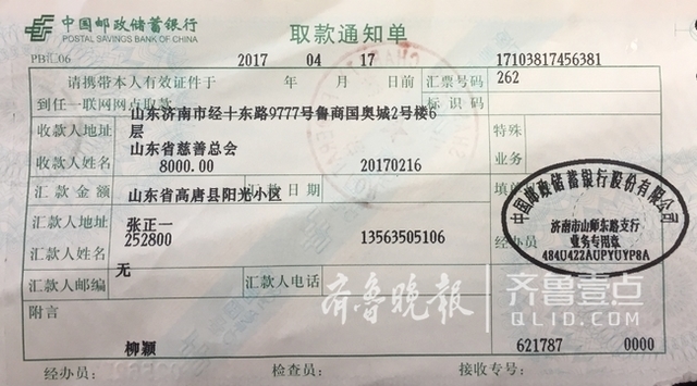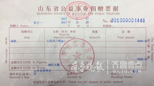 聊城张正一向省慈善总会捐款8000 捐赠证书却无法寄出_北京时间