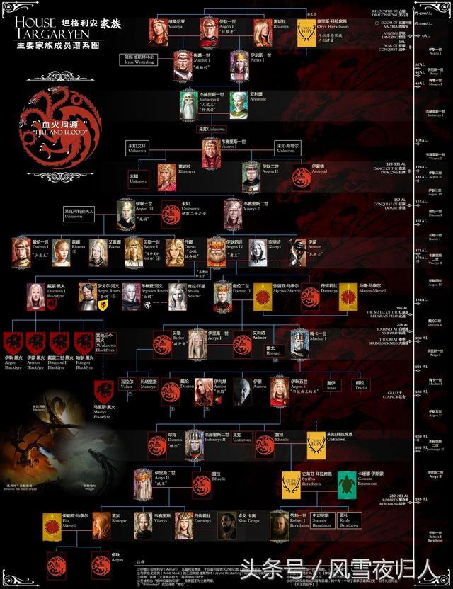 作为小说改编而成的电视剧,肯定不能详尽表述小说中的各种情节和细节,所以剧情走向跟小说有出入我们也是见怪不怪了。因为《冰与火之歌》小说的主要背景故事太庞大,人物众多,关系错综复杂,因为坦格利安家族的统一和颓败是整个故事的转折点,所以小编准备先从龙族--坦格利安家族进行详尽介绍。