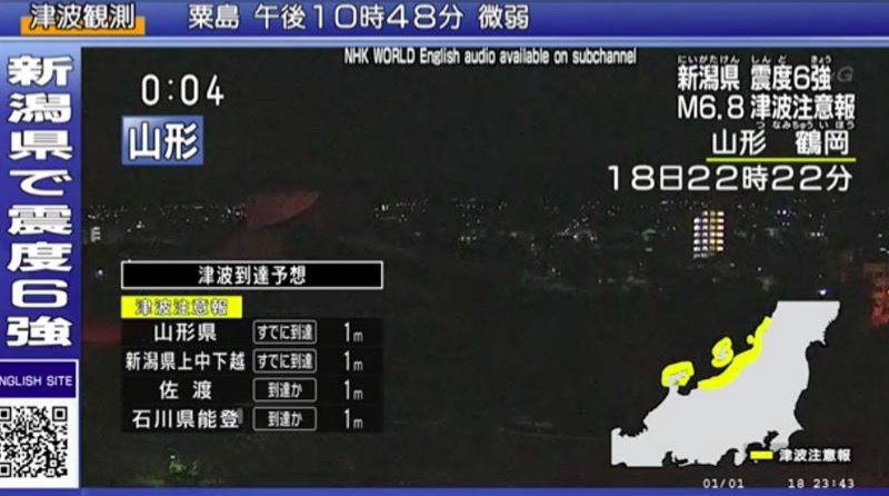 新京报快讯(记者 陈沁涵)据NHK报道,当地时间18日晚上10时22分,日本山形县附近海域发生里氏6.8级地震。日本东北电力公司称,当地时间晚上11时,山形县和新潟县共有8200户住宅停电。