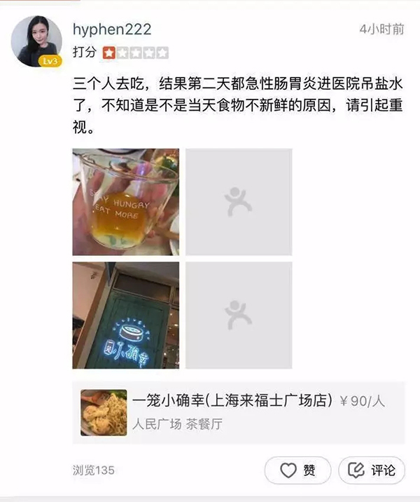 7月15日前后,网上更是频繁有网友爆料称,在一笼小确幸吃完饭之后,肠胃不舒服,甚至高烧挂盐水。