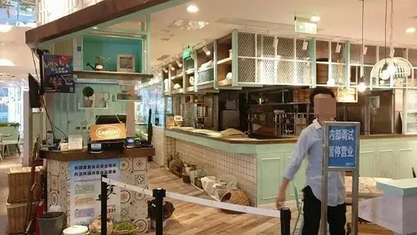 7月23日,该品牌美罗城店,大门紧闭,显示"内部调试"。一不愿具名工作人员表示:是内部整顿,估计中央厨房或什么渠道出问题了。