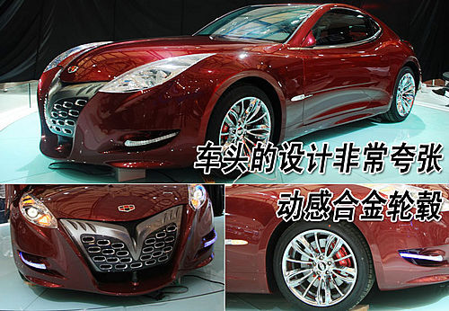 吉利GT的尾灯也融入了老虎的设计,柳叶形尾灯周围是镀铬装饰,从尾部一直向前延伸,看上去更像是老虎卷起来的尾巴。作为一款高端跑车,吉利GT的内饰也绝不含糊,内部大部分都采用了红黑双色的运动风格设计,不过感觉方向盘的尺寸有些偏大。